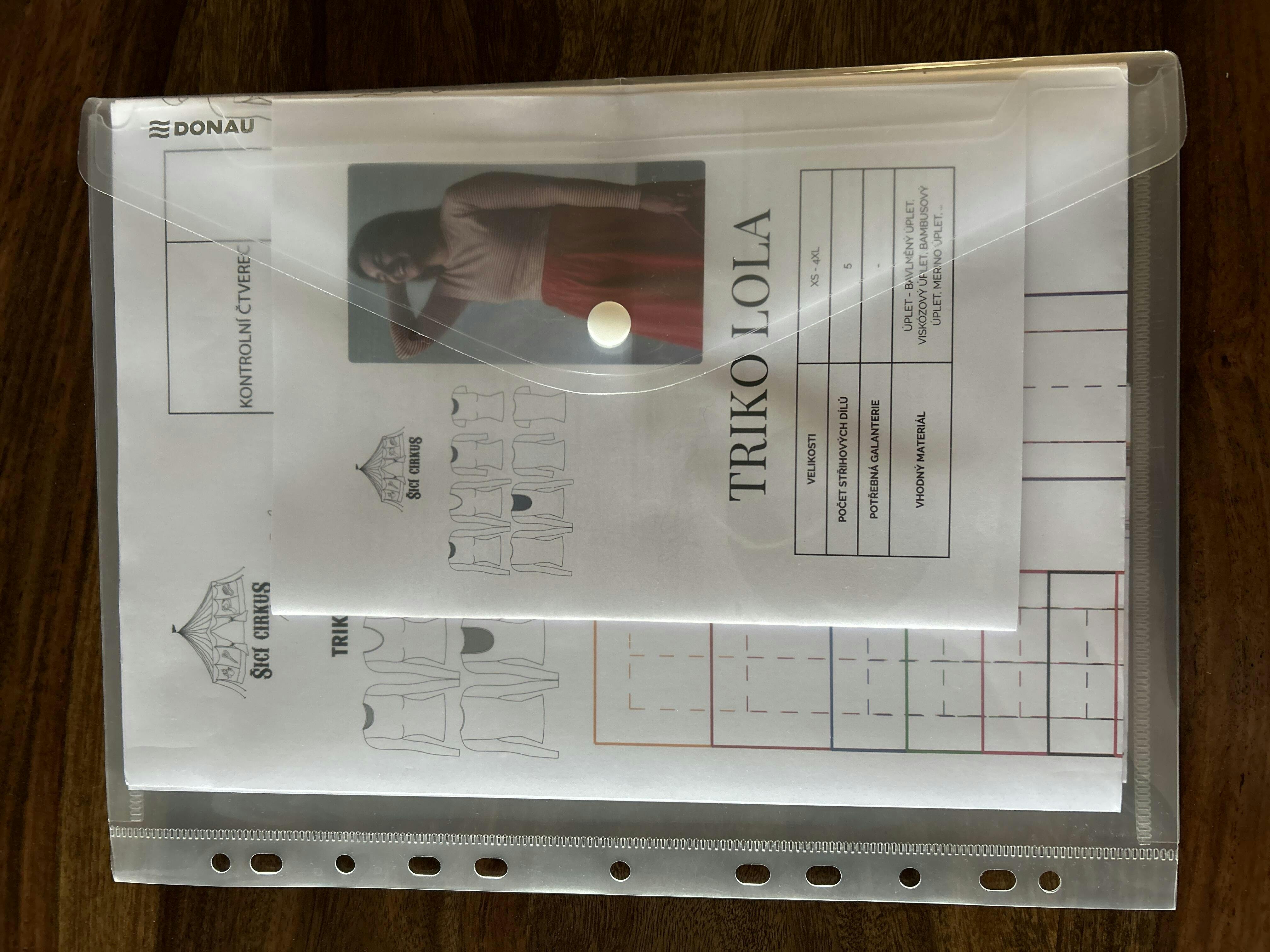Střih je navržený pro pružné materiály (např. bavlněný úplet, viskózu, modal nebo tencel) a zvládneš ho i na běžném šicím stroji – overlock je výhoda, ale není nutnost.